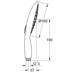 Durch das Anschlussgewinde von Ø 18,6 mm (G 1/2″) kann die Brause an eine Vielzahl herkömmlicher Armaturen angeschlossen werden. Bei 3 bar Wasserdruck liegt die maximale Durchflussmenge bei 24 l/min.