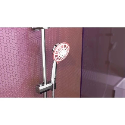 Die Duschbrause mit temperaturgesteuertem LED-Lichtwechsel minimiert das Risiko für Verbrühungen (Blau bei 30°C, Grün ab 31°C- 39°C, Rot ab 40°C